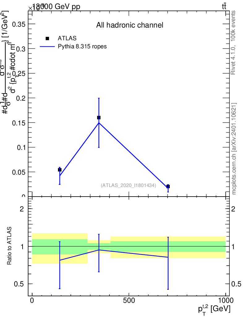 Lines: data, pythia8 8.315 ropes |