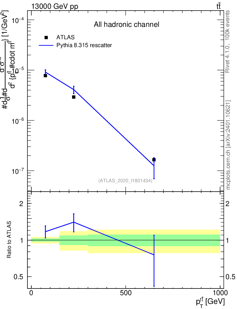 Lines: data, pythia8 8.315 rescatter |