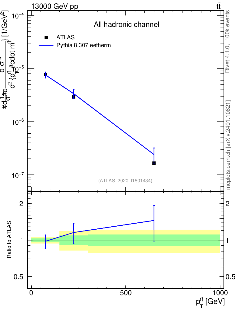 Lines: data, pythia8 8.307 eetherm |