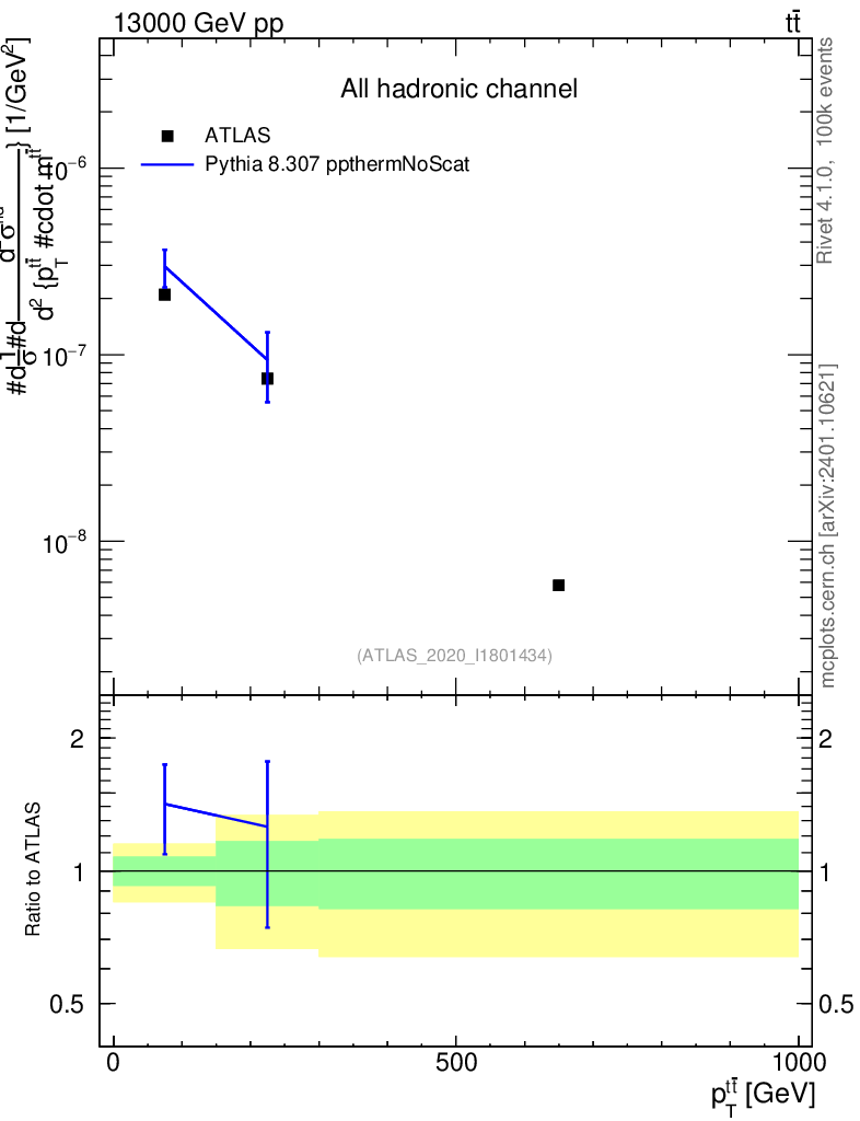 Lines: data, pythia8 8.307 ppthermNoScat |