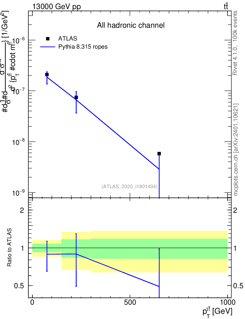 Lines: data, pythia8 8.315 ropes |
