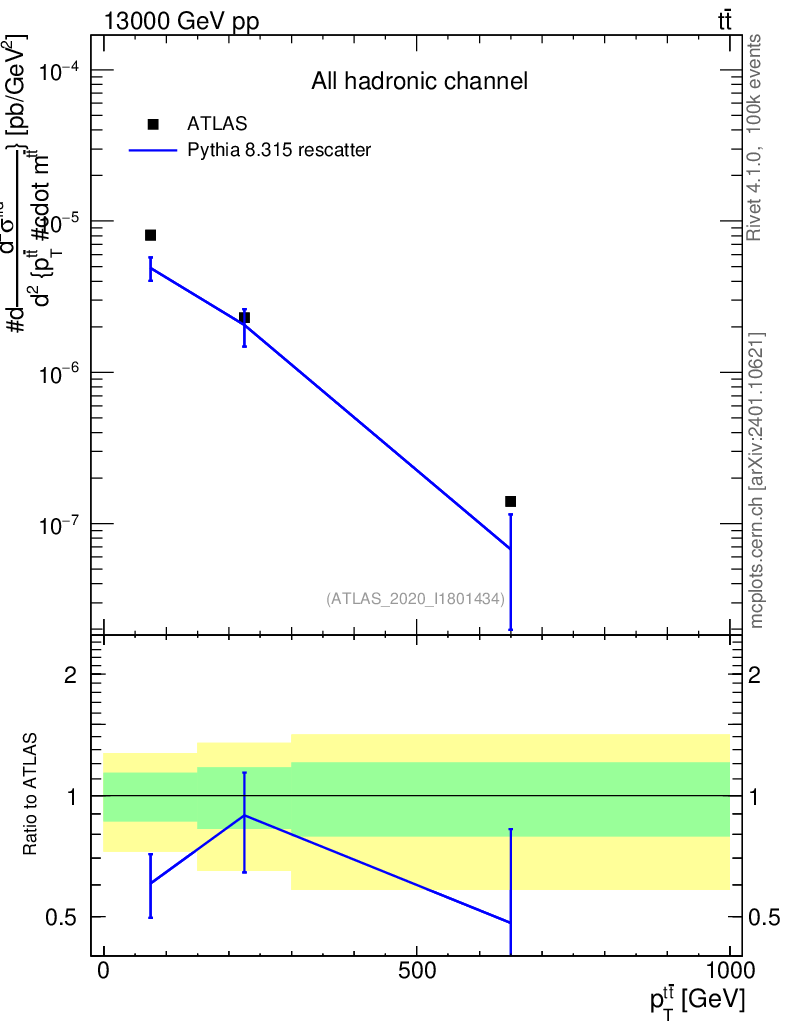 Lines: data, pythia8 8.315 rescatter |