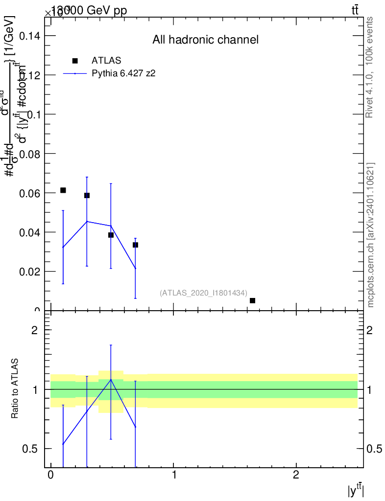 Lines: data, pythia6 6.427 z2 |