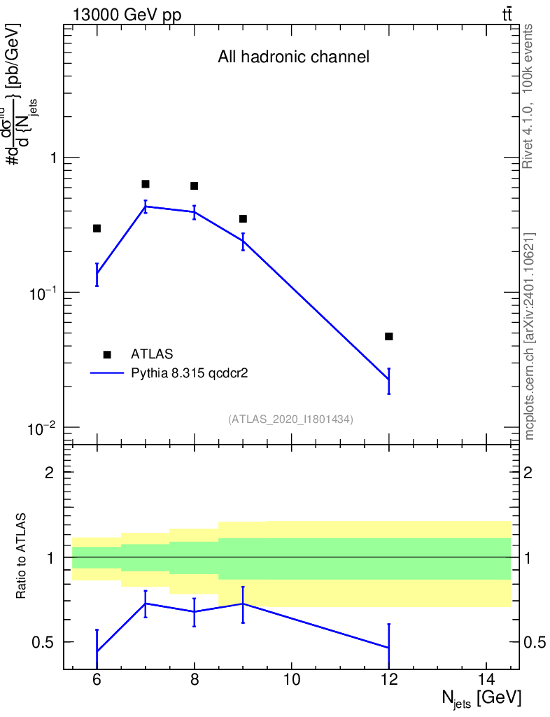 Lines: data, pythia8 8.315 qcdcr2 |