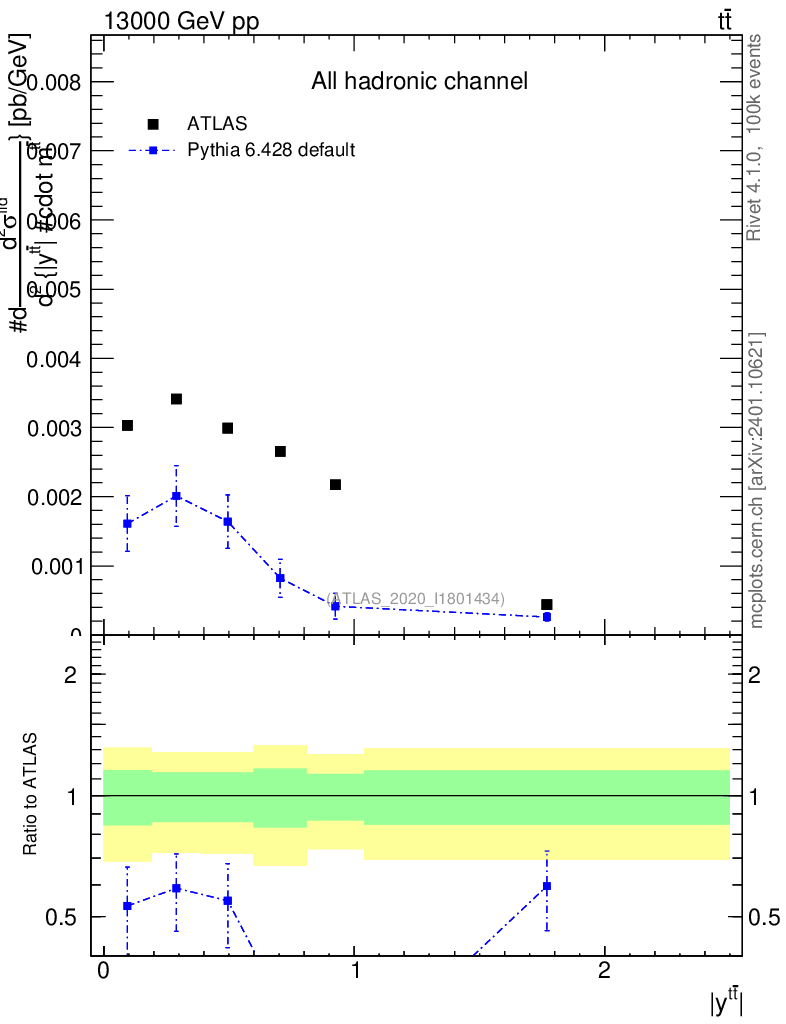 Lines: data, pythia6 6.428 default |