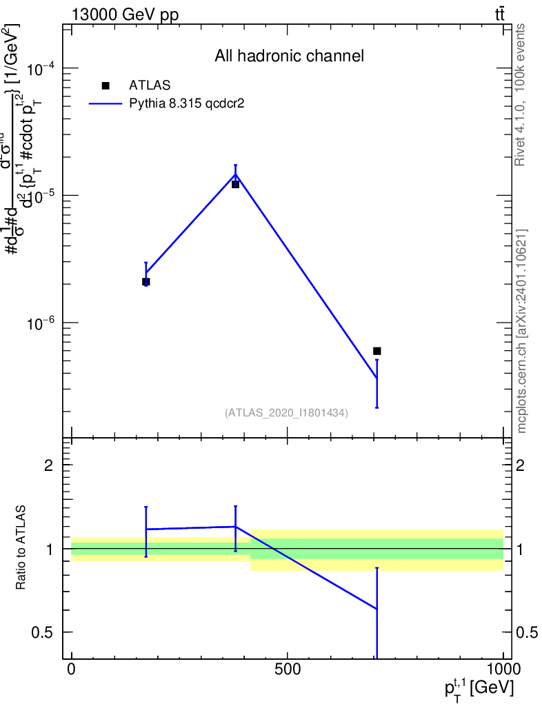 Lines: data, pythia8 8.315 qcdcr2 |
