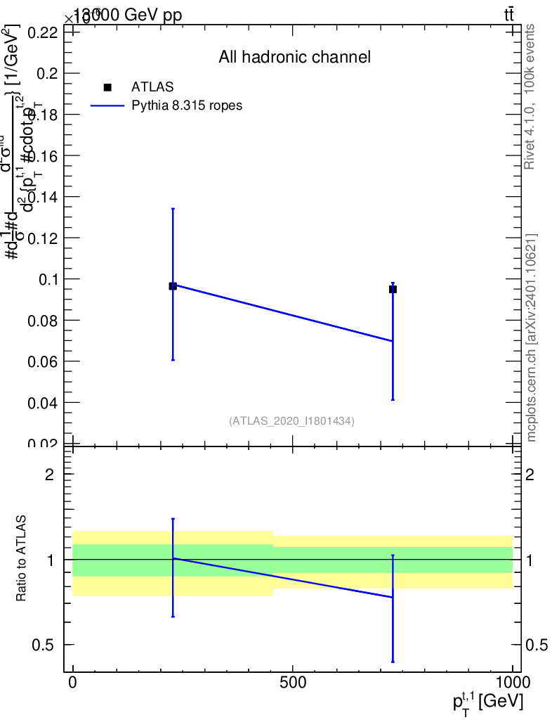 Lines: data, pythia8 8.315 ropes |