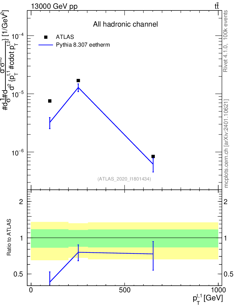 Lines: data, pythia8 8.307 eetherm |