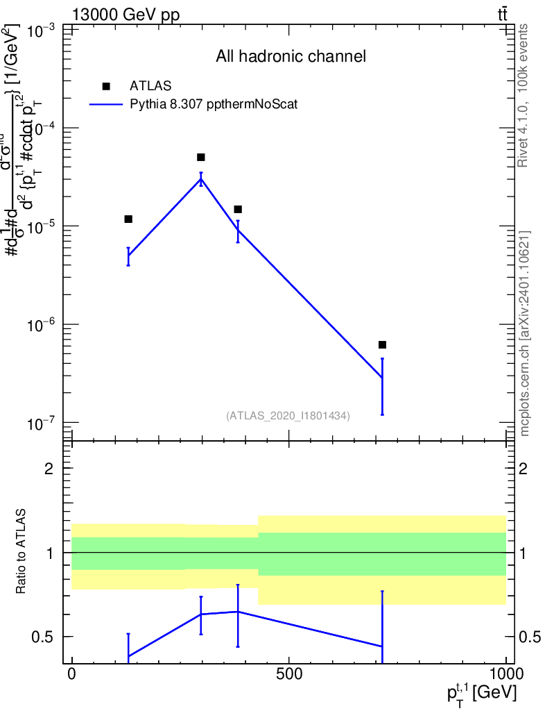 Lines: data, pythia8 8.307 ppthermNoScat |
