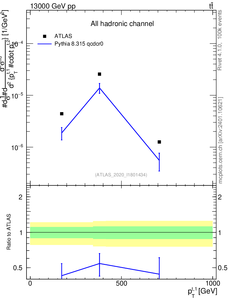Lines: data, pythia8 8.315 qcdcr0 |