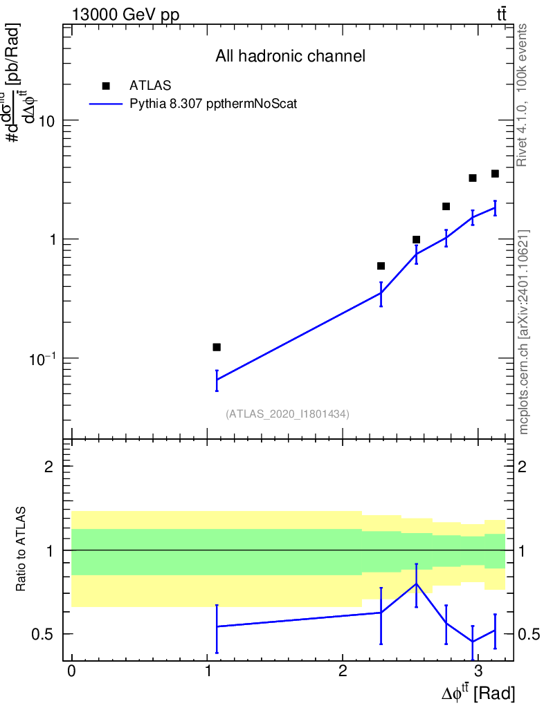 Lines: data, pythia8 8.307 ppthermNoScat |