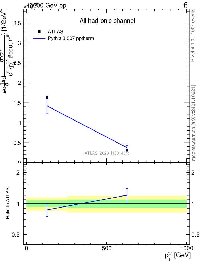 Lines: data, pythia8 8.307 pptherm |