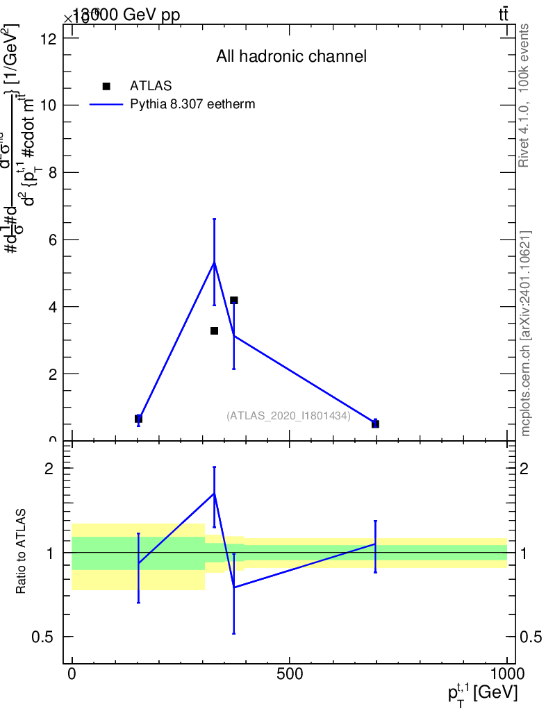 Lines: data, pythia8 8.307 eetherm |