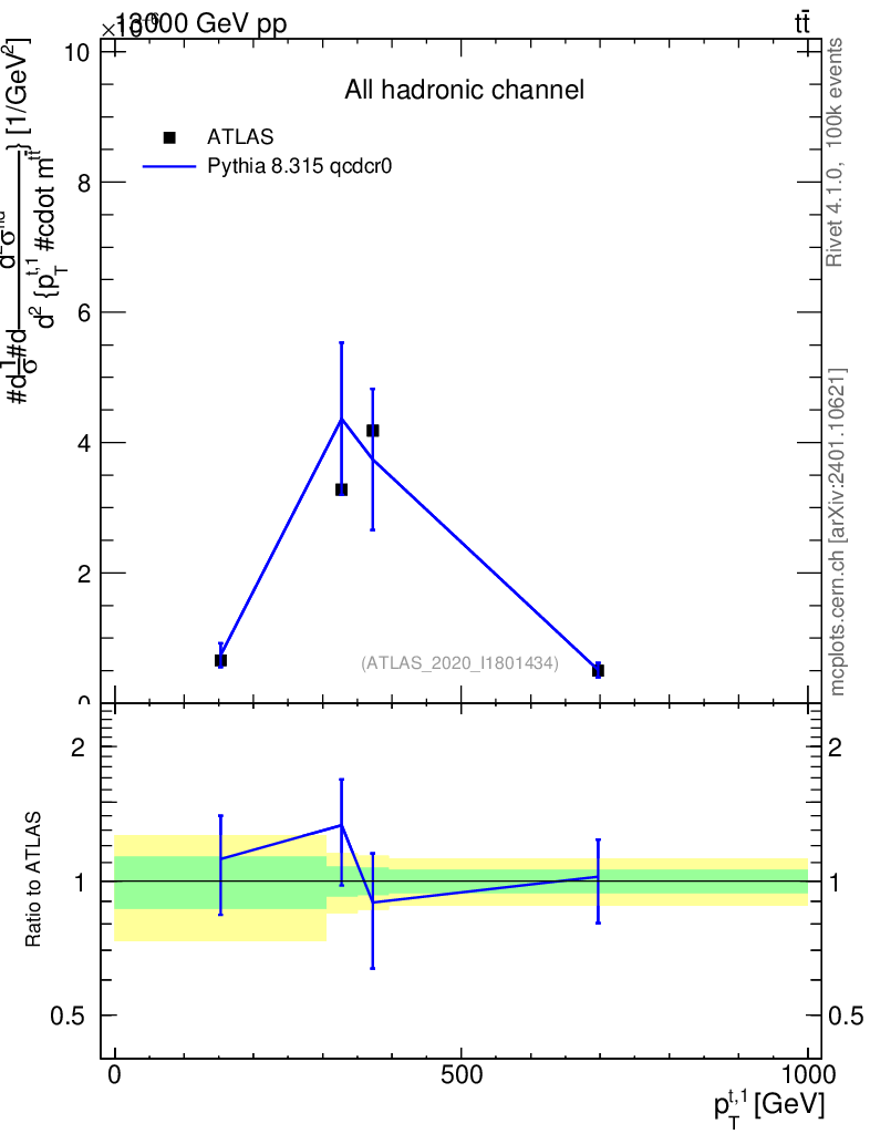 Lines: data, pythia8 8.315 qcdcr0 |