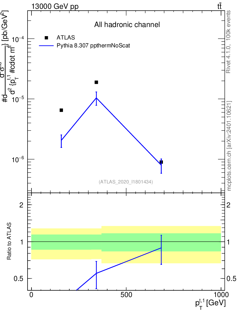 Lines: data, pythia8 8.307 ppthermNoScat |