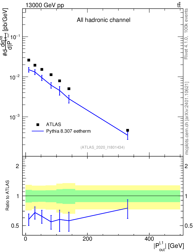Lines: data, pythia8 8.307 eetherm |