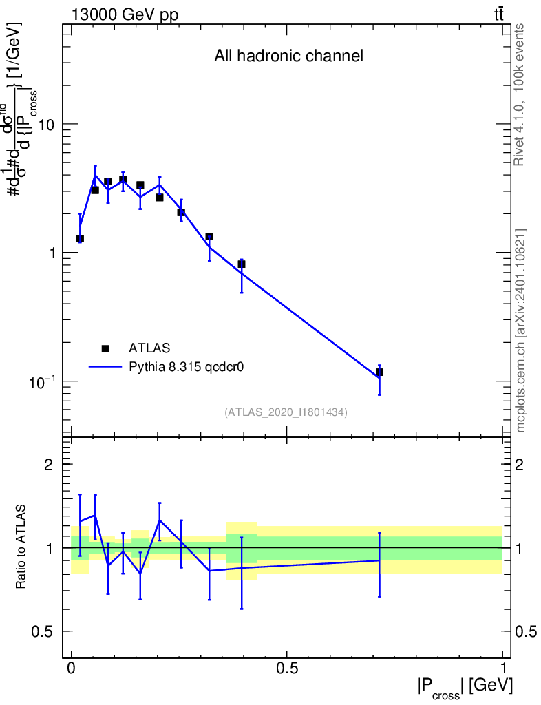 Lines: data, pythia8 8.315 qcdcr0 |