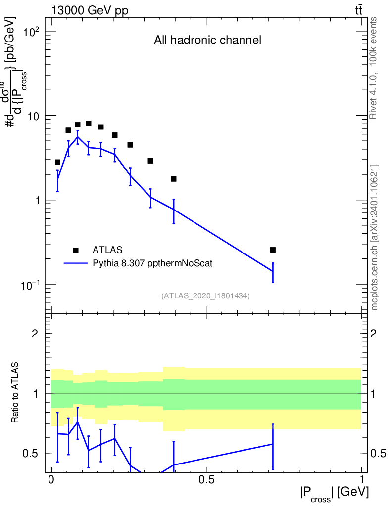 Lines: data, pythia8 8.307 ppthermNoScat |