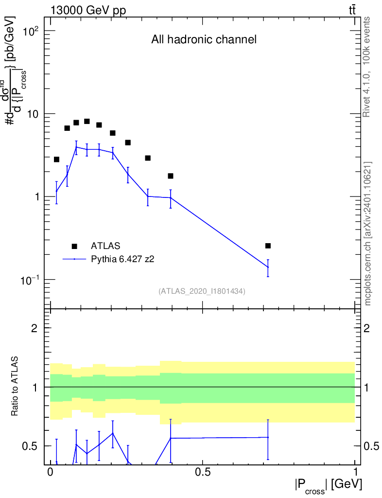 Lines: data, pythia6 6.427 z2 |