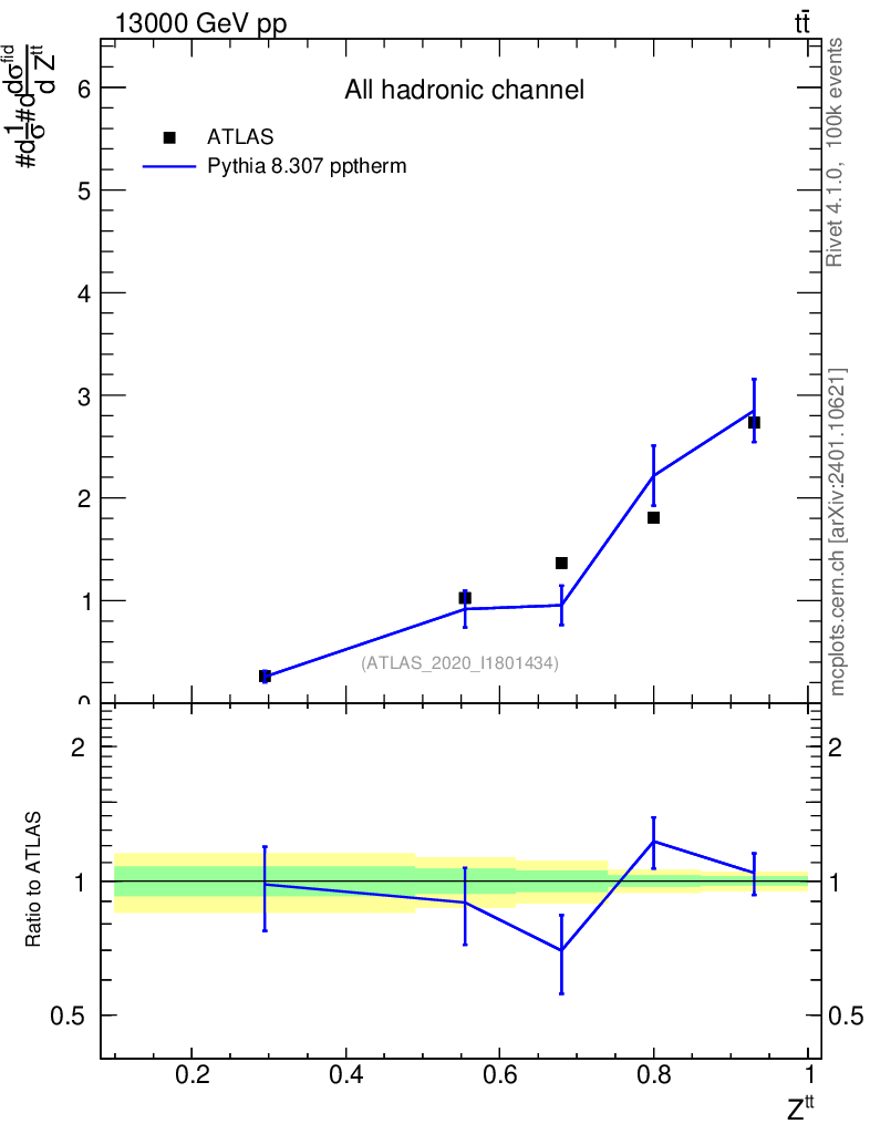 Lines: data, pythia8 8.307 pptherm |
