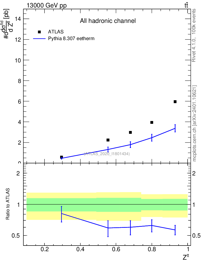 Lines: data, pythia8 8.307 eetherm |