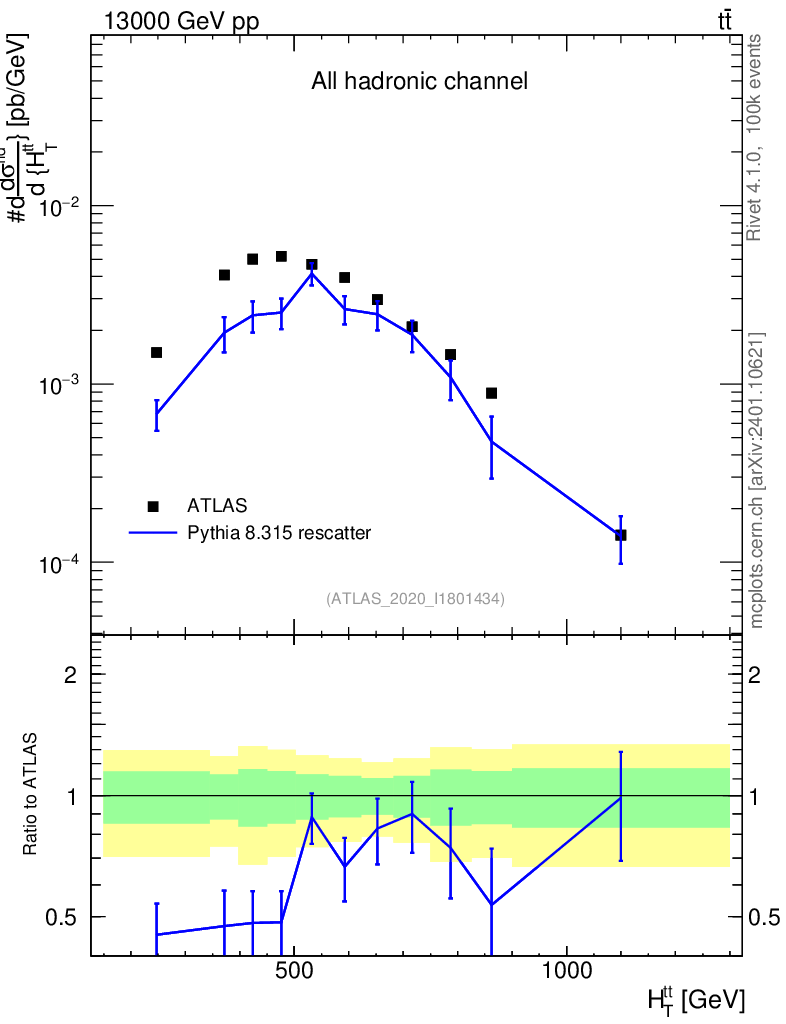 Lines: data, pythia8 8.315 rescatter |