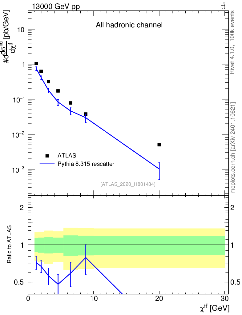 Lines: data, pythia8 8.315 rescatter |