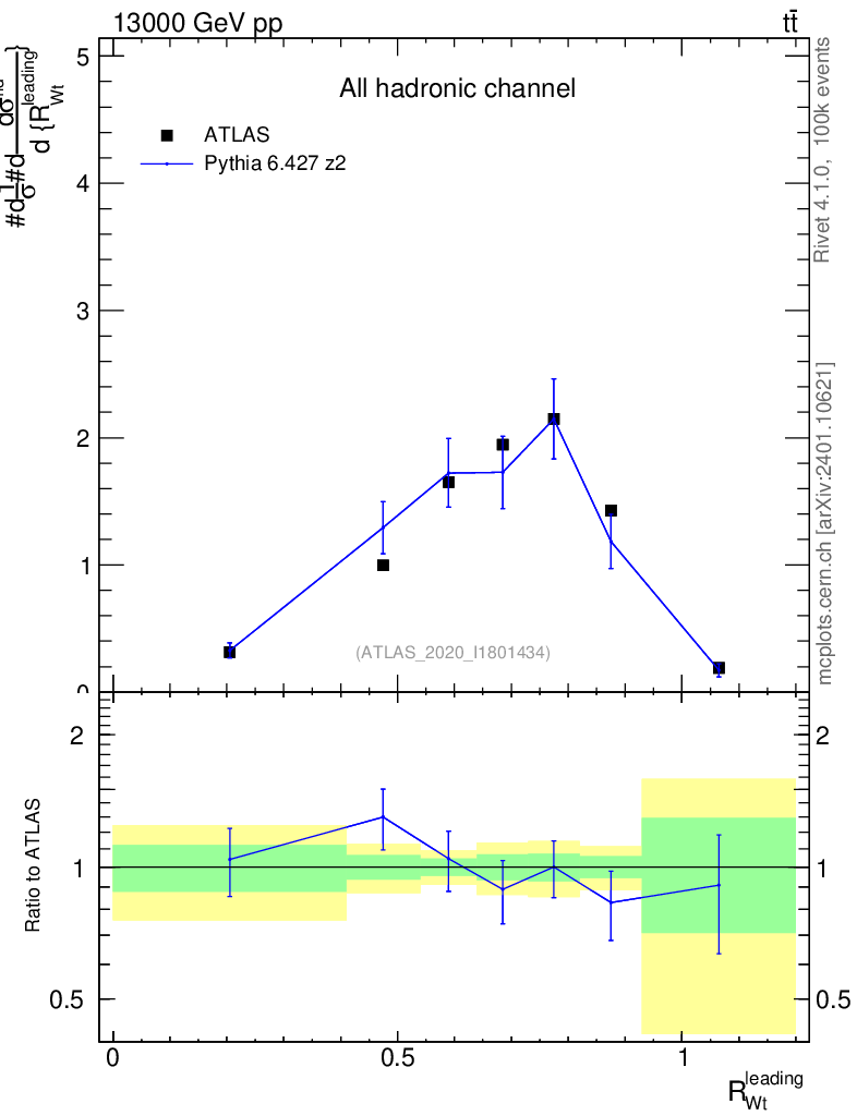 Lines: data, pythia6 6.427 z2 |