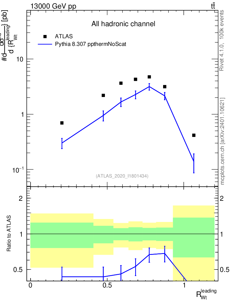 Lines: data, pythia8 8.307 ppthermNoScat |