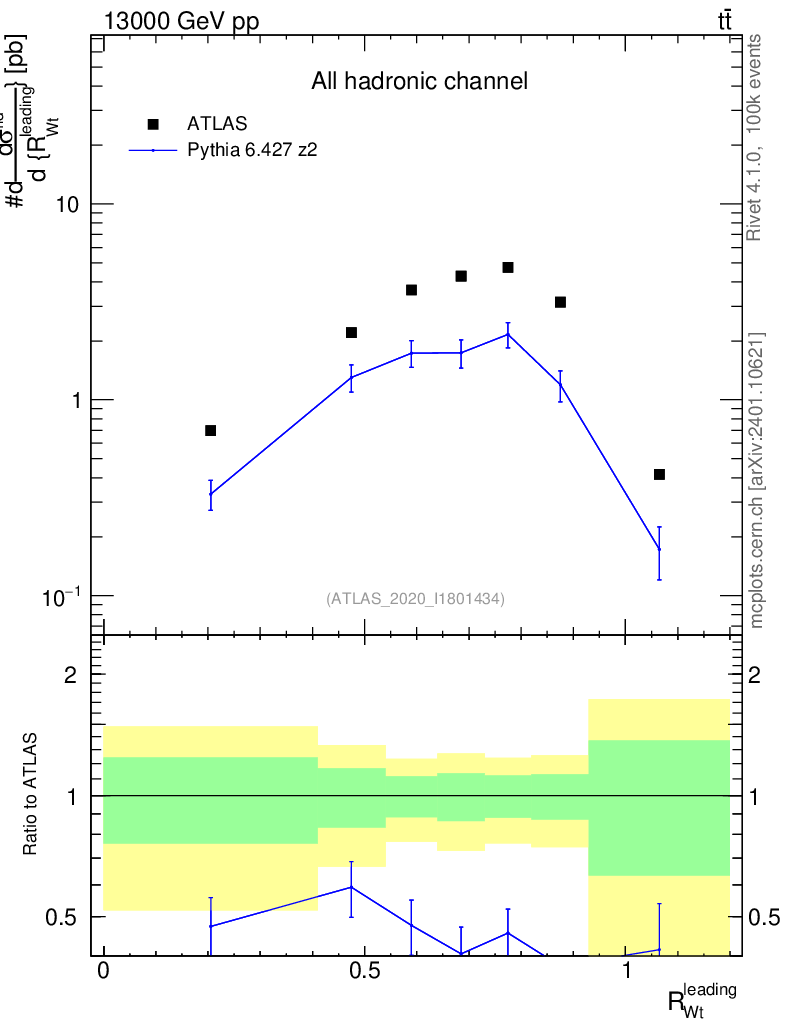Lines: data, pythia6 6.427 z2 |