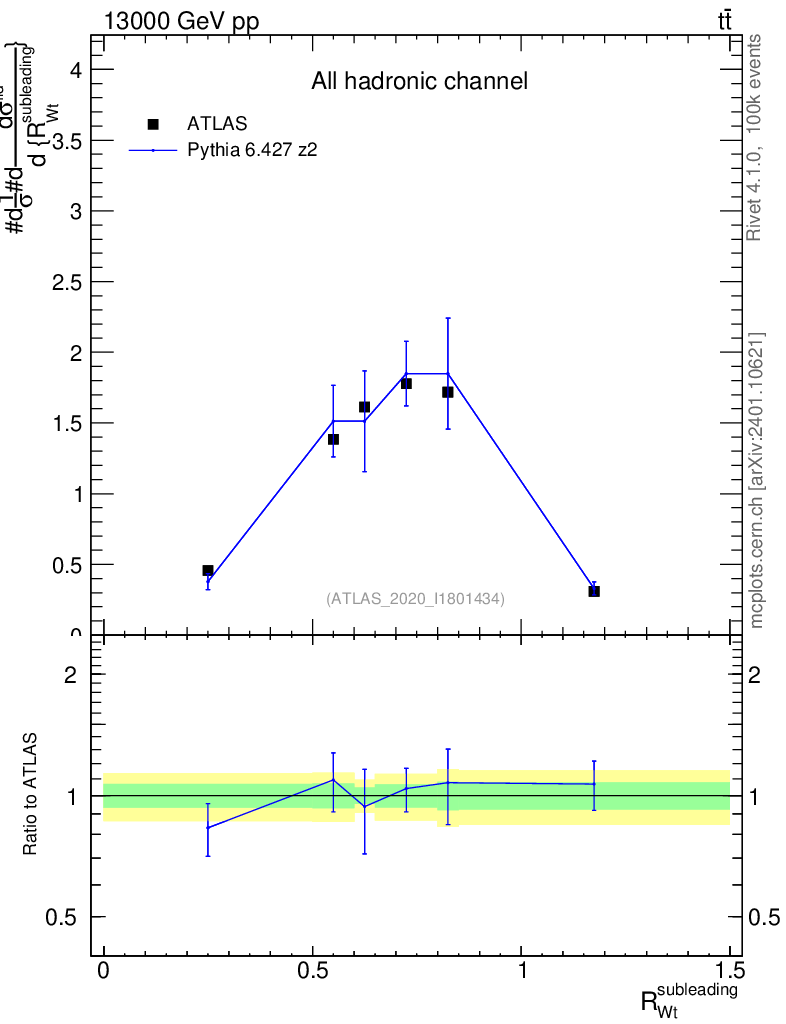 Lines: data, pythia6 6.427 z2 |