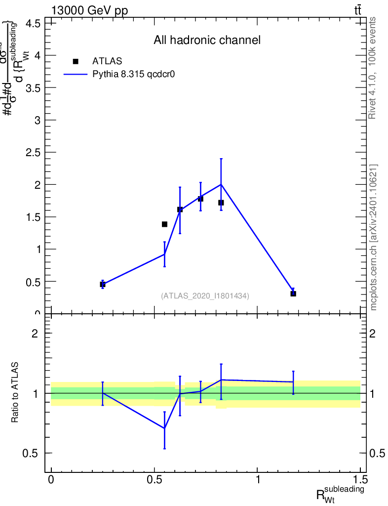 Lines: data, pythia8 8.315 qcdcr0 |