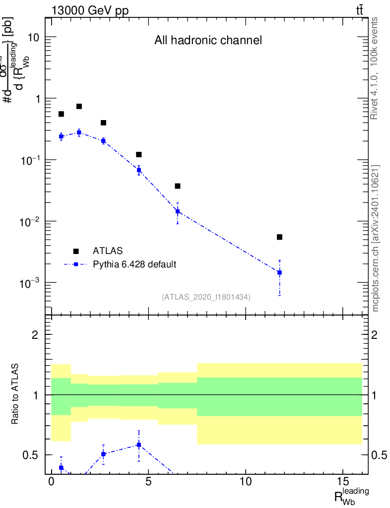Lines: data, pythia6 6.428 default |