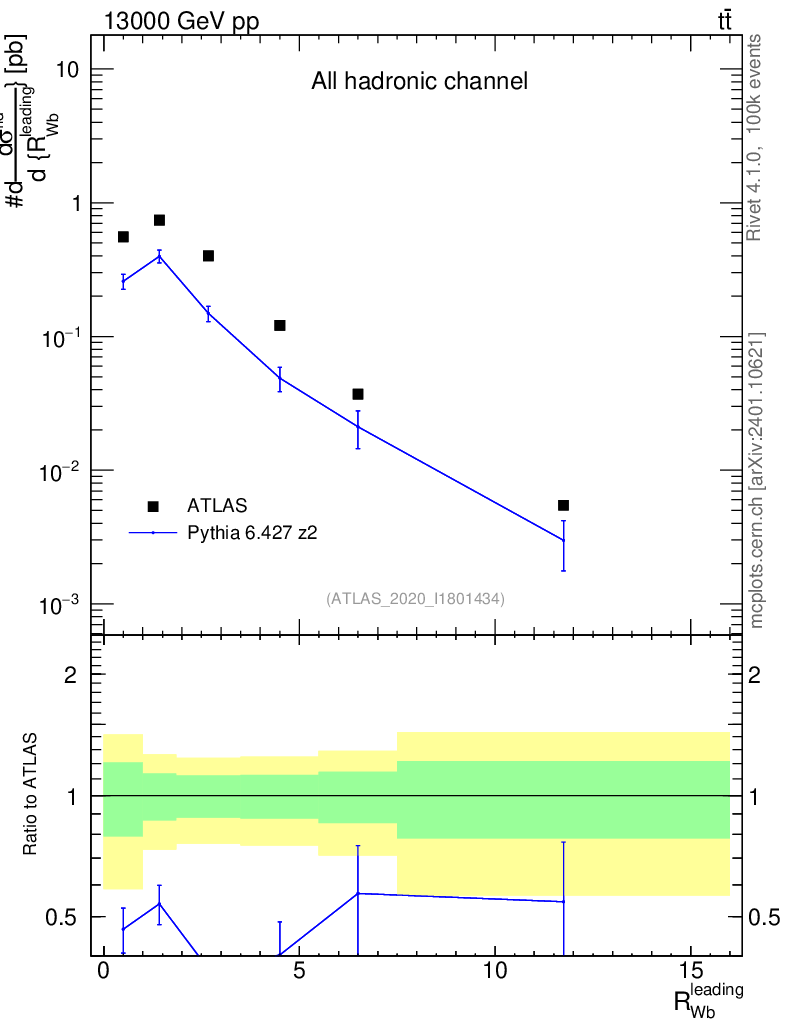 Lines: data, pythia6 6.427 z2 |