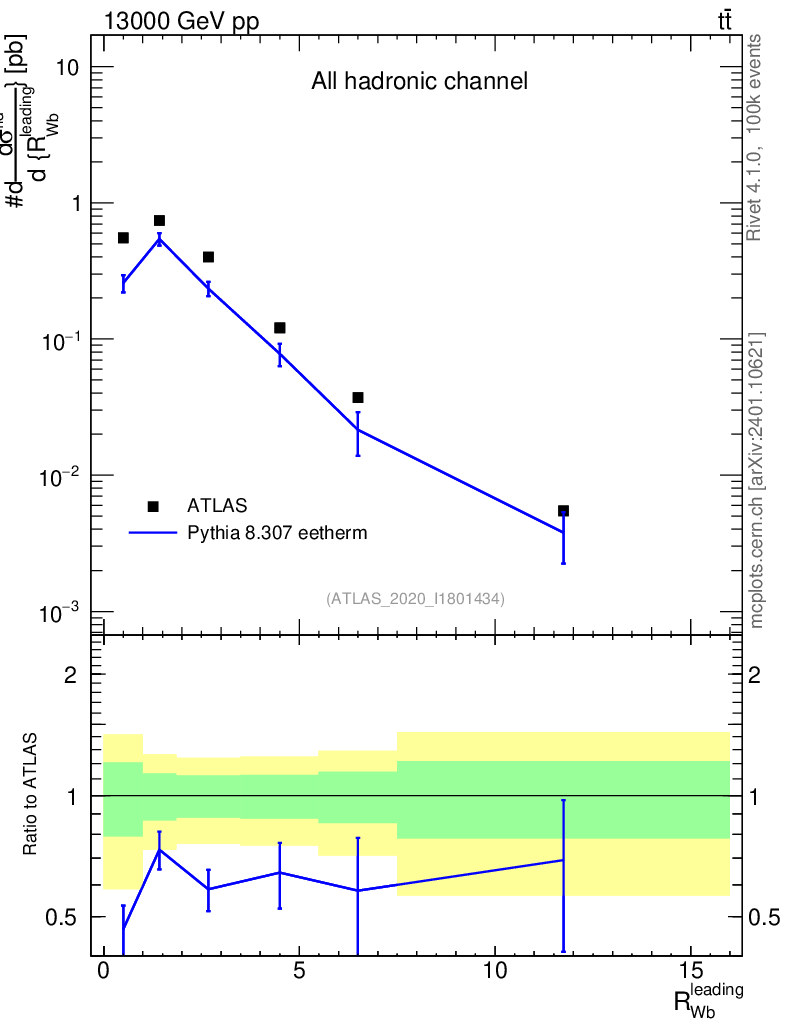 Lines: data, pythia8 8.307 eetherm |