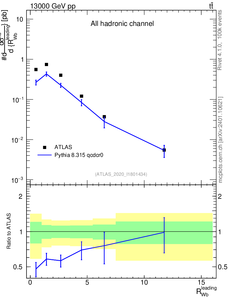 Lines: data, pythia8 8.315 qcdcr0 |