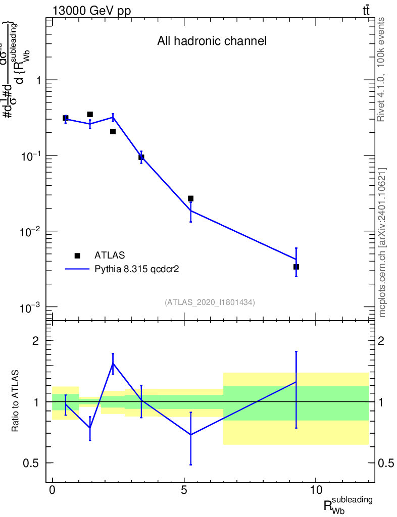 Lines: data, pythia8 8.315 qcdcr2 |