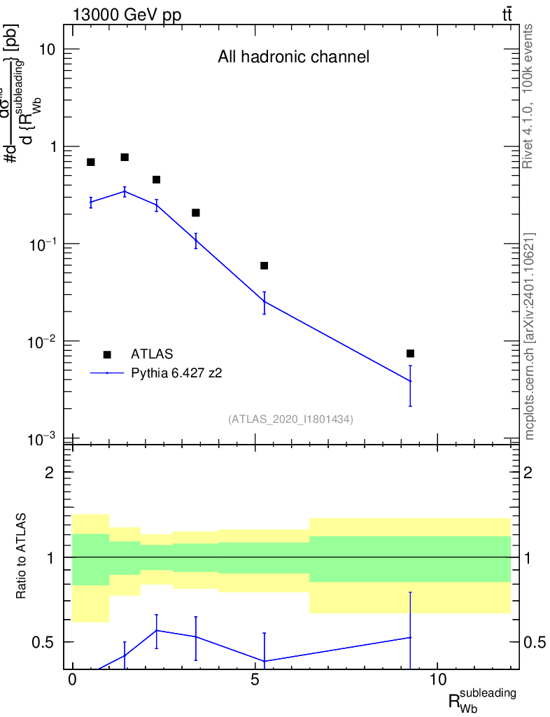 Lines: data, pythia6 6.427 z2 |