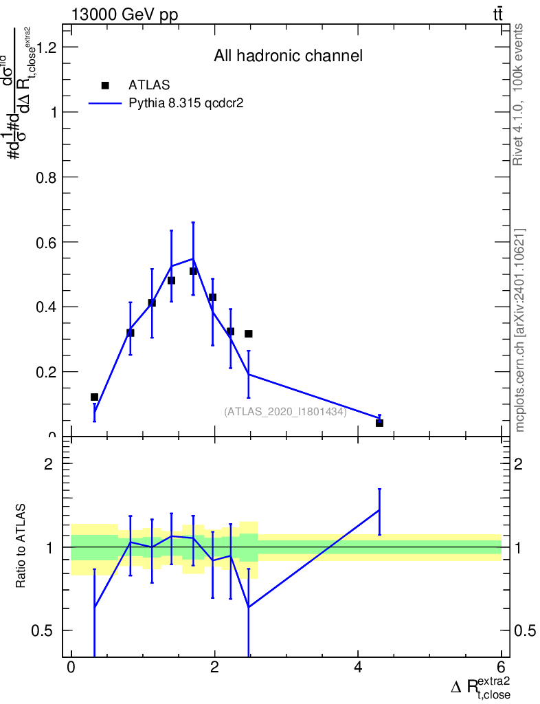 Observable: ΔR(top, extra jet)