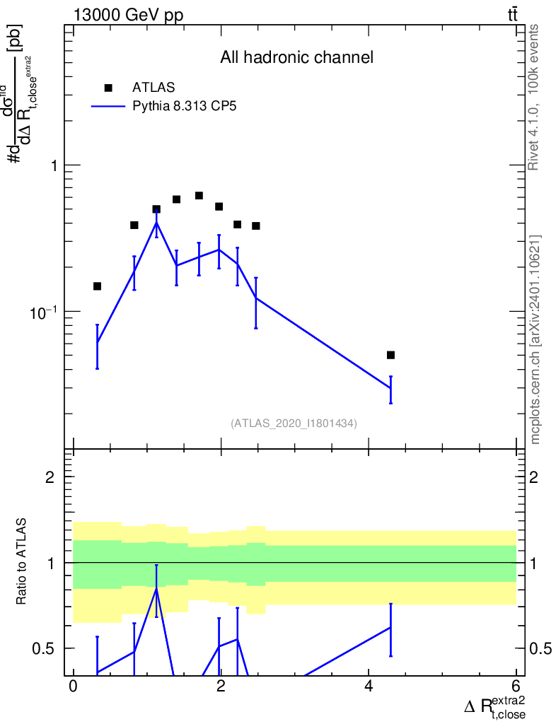Observable: ΔR(top, extra jet)