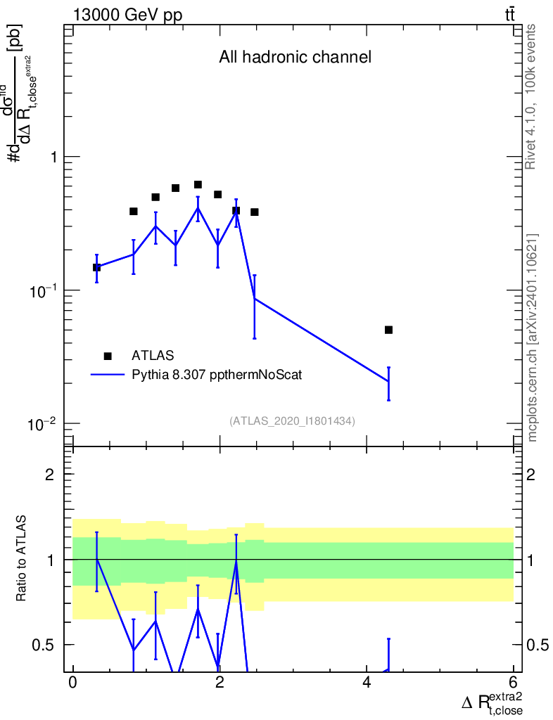 Lines: data, pythia8 8.307 ppthermNoScat |