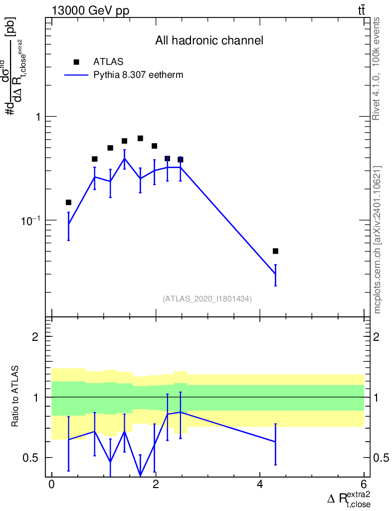 Lines: data, pythia8 8.307 eetherm |