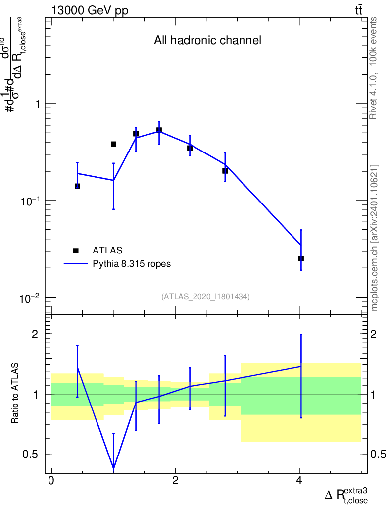 Lines: data, pythia8 8.315 ropes |