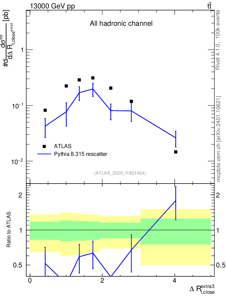 Lines: data, pythia8 8.315 rescatter |