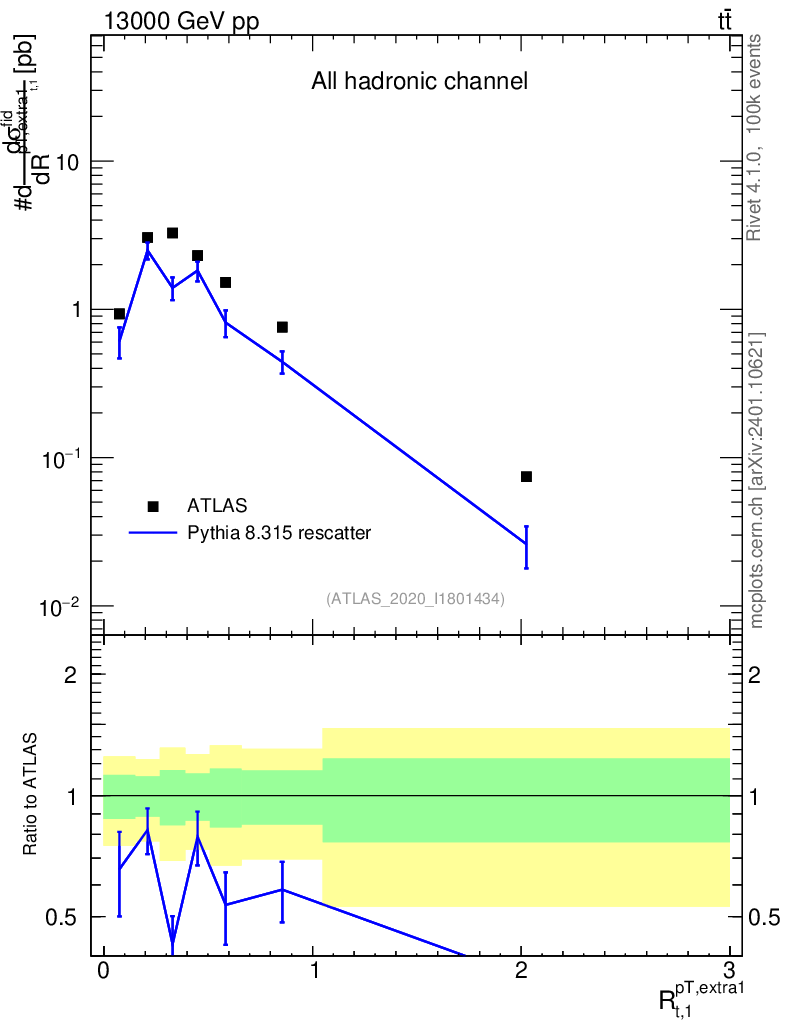 Lines: data, pythia8 8.315 rescatter |
