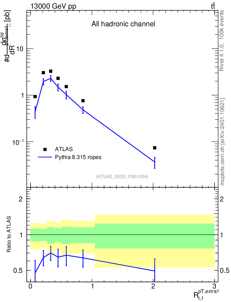 Lines: data, pythia8 8.315 ropes |