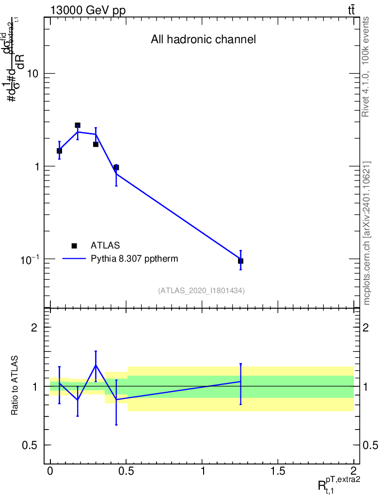 Lines: data, pythia8 8.307 pptherm |