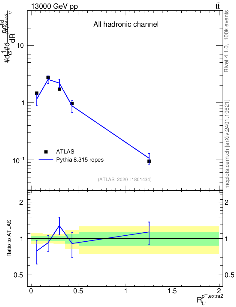Lines: data, pythia8 8.315 ropes |