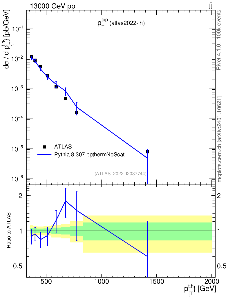 Lines: data, pythia8 8.307 ppthermNoScat |