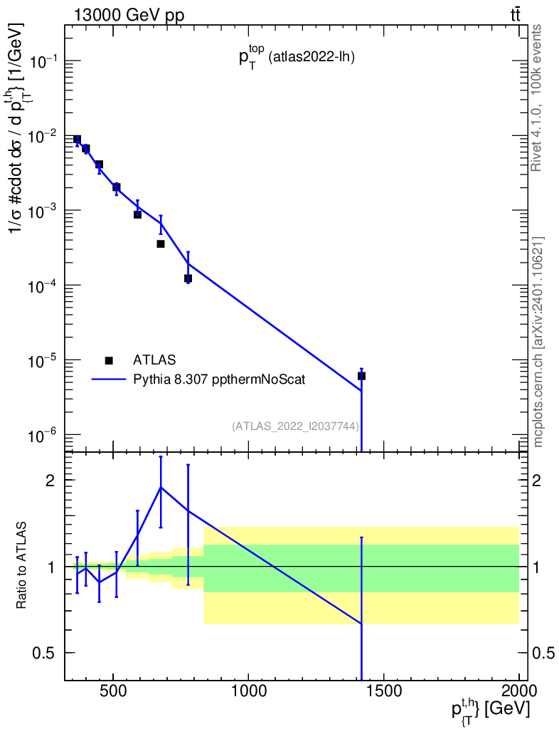 Lines: data, pythia8 8.307 ppthermNoScat |